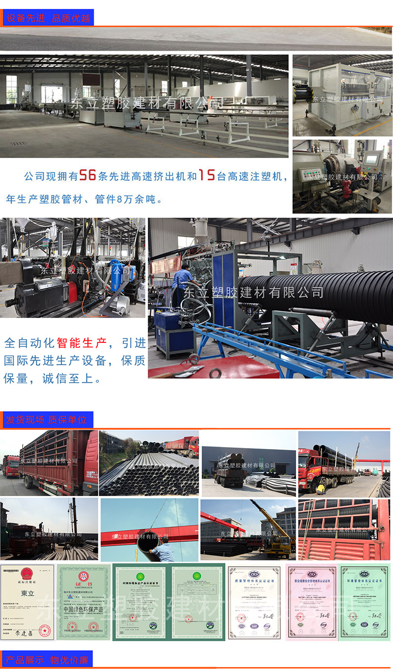 PE管采用目前世界上最先進的技術生產(chǎn)制造的,具有高速擠出成型,熔融適度,自動定尺切割,PLC控制生產(chǎn)全過程的先進性能。